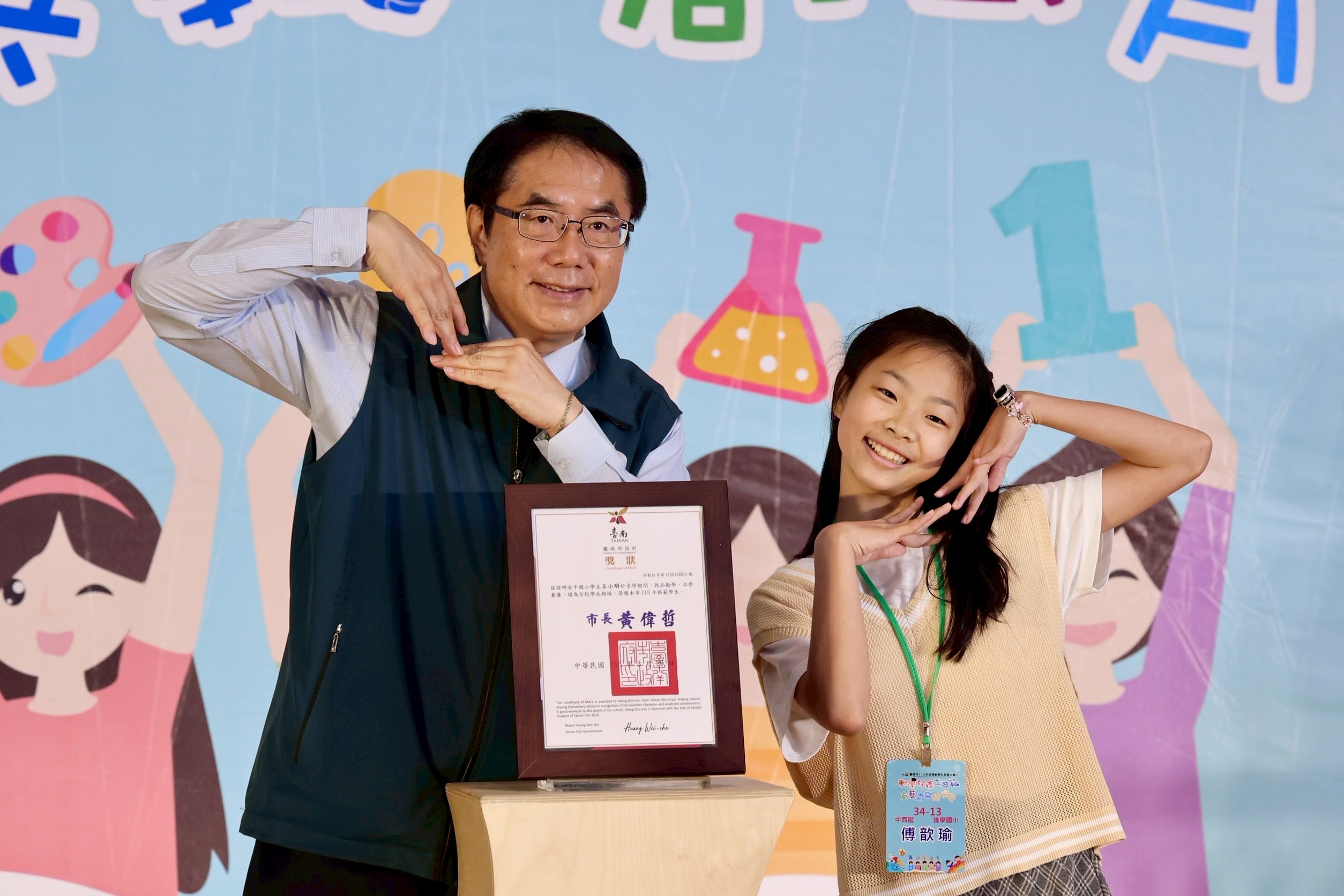 兒童節將屆,教育局二十六日於慈濟高中舉行模範學生表揚大會,市長黃偉哲親自為三百五十四名模範生頒獎。黃偉哲表示,獲選模範生不僅是個人榮耀,更是家長與師長共同耕耘的甜美成果,勉勵學子們在步入國中新階段後,持續保持勤學初衷,將個人潛能轉化為守護社會的堅實棟梁。