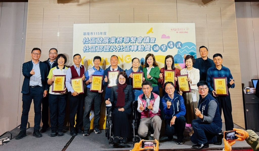 基隆市政府舉辦「一一五年社區發展業務聯繫會議暨社區認證及社區轉動獎頒獎儀式」,邀集基隆各區社區發展協會代表齊聚一堂,進行業務交流與經驗分享,並公開表揚長期深耕地方、投入社區服務的優秀團體與個人,現場氣氛溫馨熱絡。