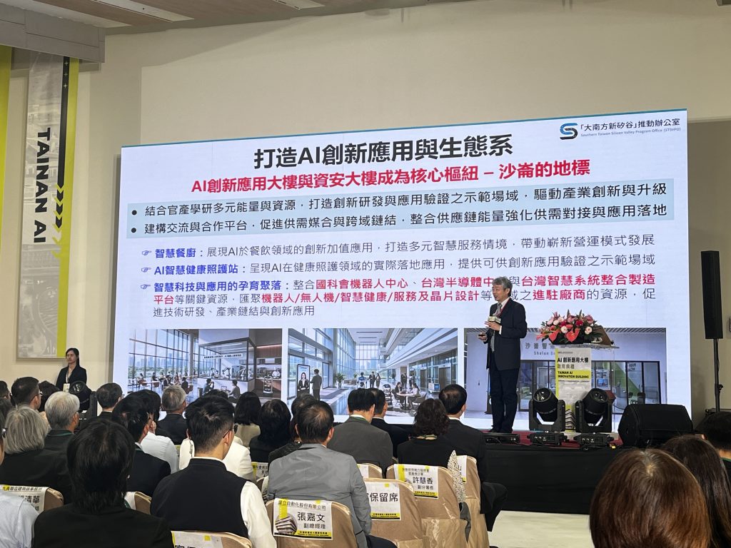 位在歸仁沙崙智慧綠能科學城的AI創新應用大樓,由行政院長卓榮泰、國科會主委吳誠文、副市長趙卿惠、立委陳亭妃、王定宇等人共同揭牌啟用。卓榮泰指出,總統賴清德「均衡台灣」政策下,沙崙智慧綠能科學城一直在進步,主要就是不讓其他國家追上來,可以繼續保持領先,未來再透過AI技術結合製造、醫療、交通與城市治理等領域,推動「百工百業AI落地」,擴大應用,帶動南部產業持續升級、創新發展。