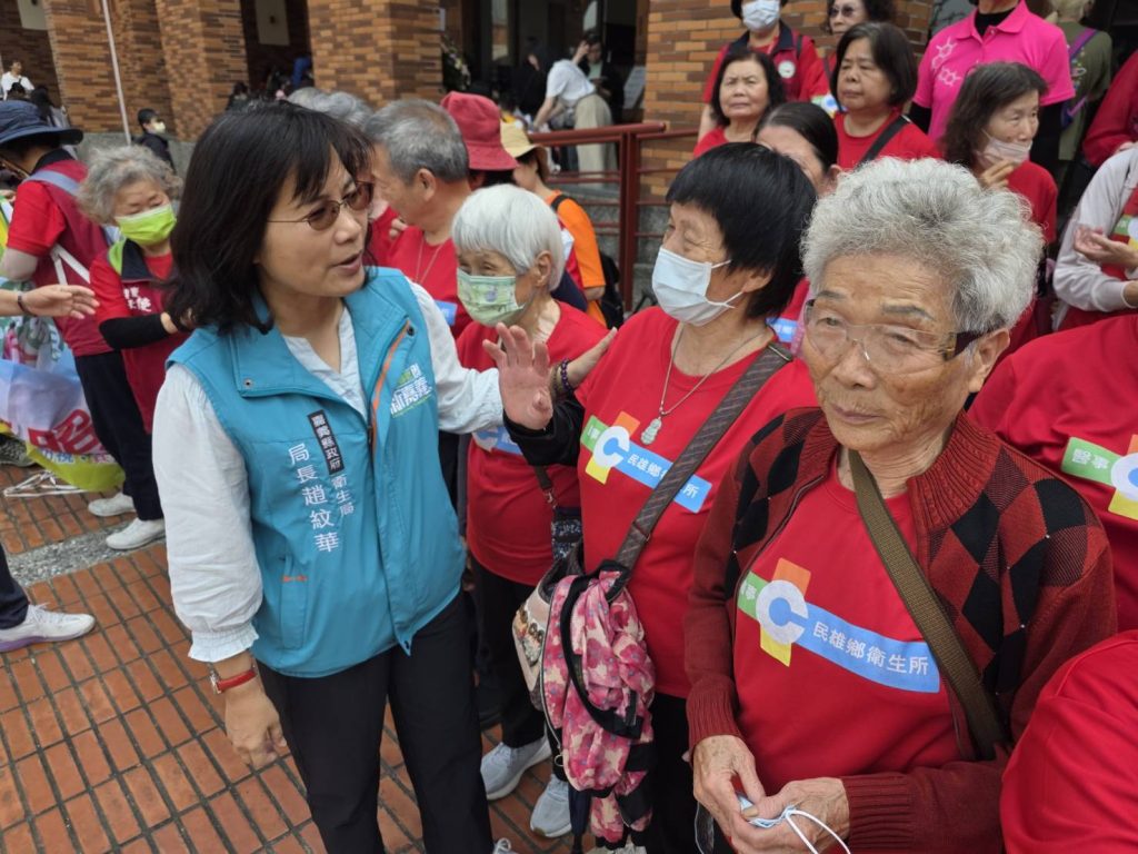 嘉義縣衛生局長趙紋華與民雄鄉長者交流互動,關心長輩參與藝文活動情形,鼓勵走出家門、提升身心健康與生活幸福感。(記者張翔翻攝)