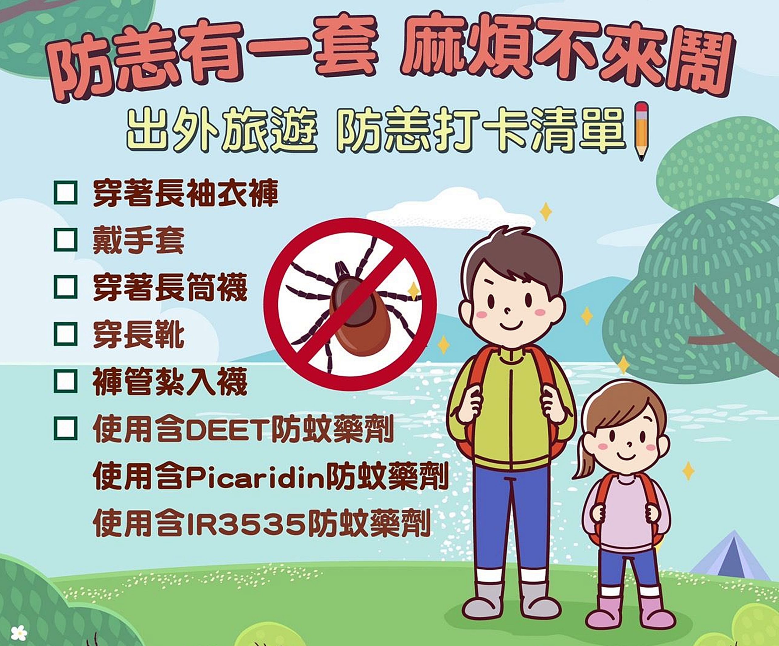 衛生局更呼籲,民眾從事戶外活動返家後,如有發燒、頭痛或皮膚出現不明原因焦痂傷口等症狀時,應儘速就醫並主動告知近期活動史,以利醫師及早診斷與治療。