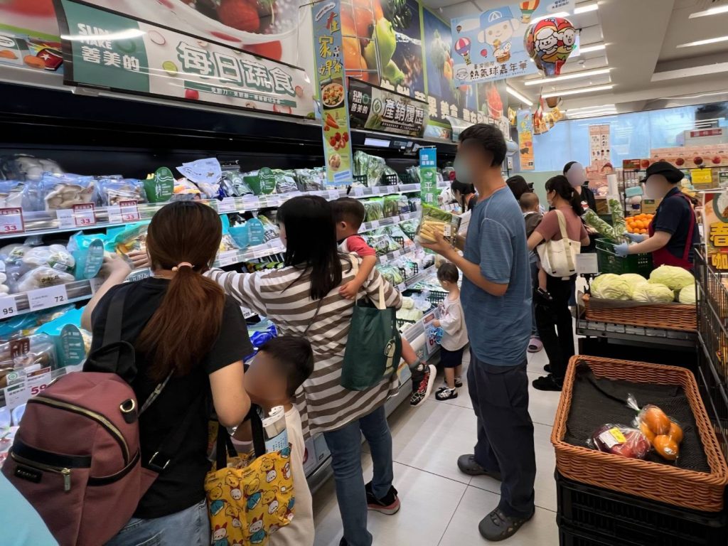 親子家庭共同走入超市賣場參與健康採購活動,透過實地觀察食品標示與食材挑選,將正確的減鹽、減糖營養知識落實於日常生活中。 (記者王正平翻攝)
