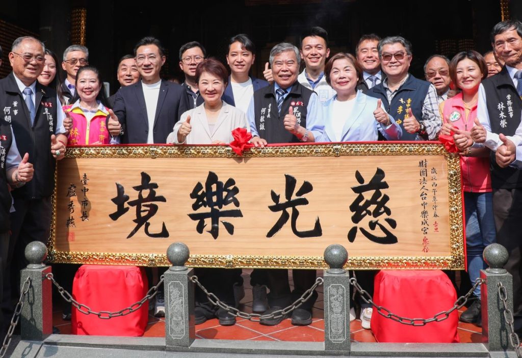 國定三級古蹟「台中樂成宮」被網友票選為全台最靈驗月老廟,成為許多年輕男女祈求良緣的聖地。樂成宮二十八日隆重舉行第九屆集團結婚,市長盧秀燕親自到場為新人送上祝福、傳授婚姻保鮮秘訣,並代表市府致贈「慈光樂境」匾額,感謝樂成宮長年對地方的貢獻。