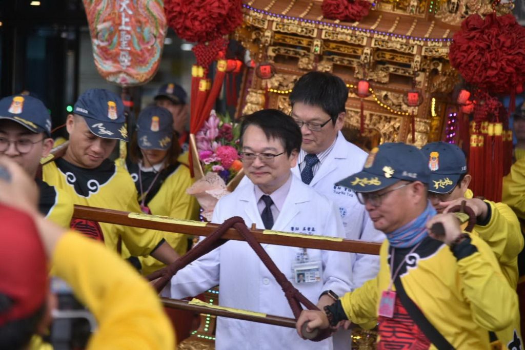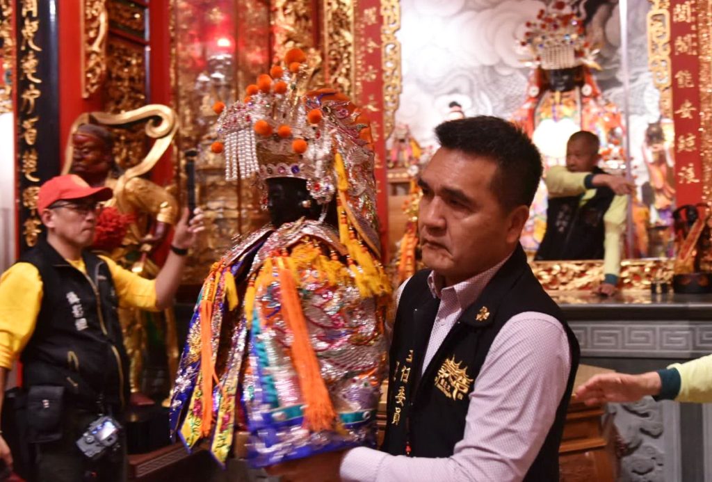 隨後由王經綻、副主任委員蔡棟樑、陳金柱、王連松、林永吉、王(左火右因)超等人員燃放三響「起馬炮」後啟程。上午七時遶境熱鬧展開,在哨角隊、莊義團、千里眼和順風耳公、三十六執士、大旗、太子團等前導下,鑼鼓喧天、鞭炮聲震耳欲聾、焰火聲中起駕,浩浩蕩蕩展開遶境祈福活動,遶境行程以搭車、徒步交替。