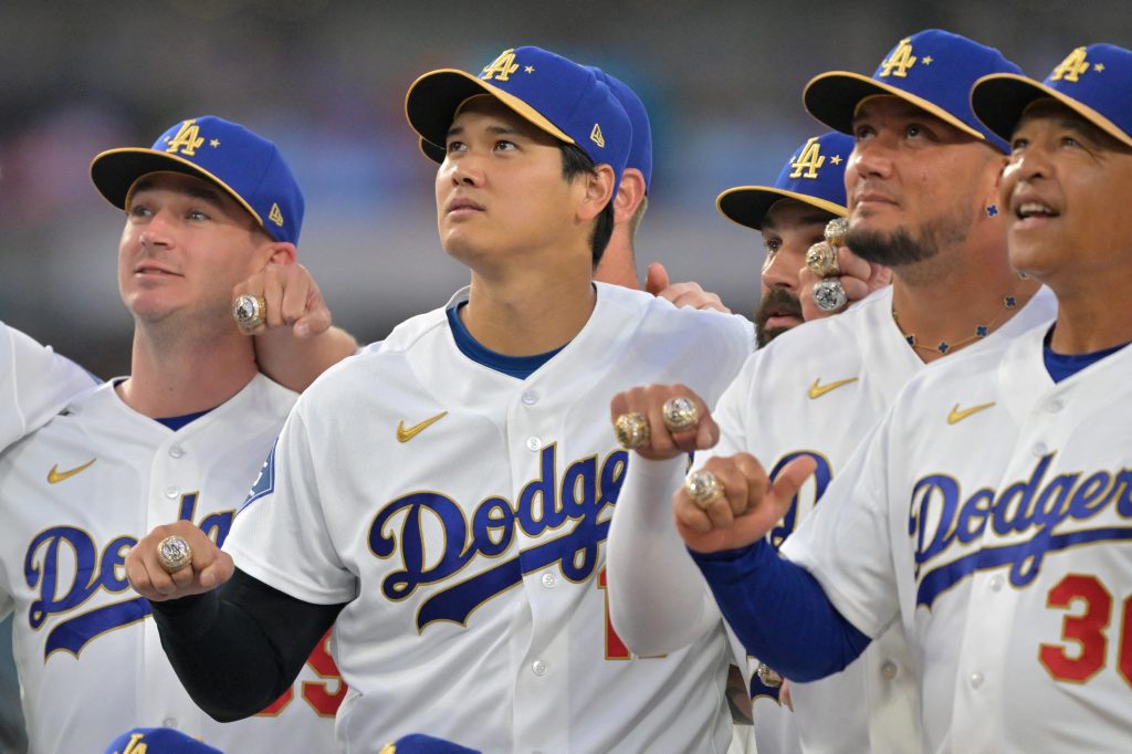 美國職棒大聯盟MLB洛杉磯道奇隊當地時間27日頒發紀念2025年賽季達成「世界大賽」2連霸的冠軍戒指。大谷翔平笑稱,「已經準備好在左手無名指以外的手指戴冠軍戒」。