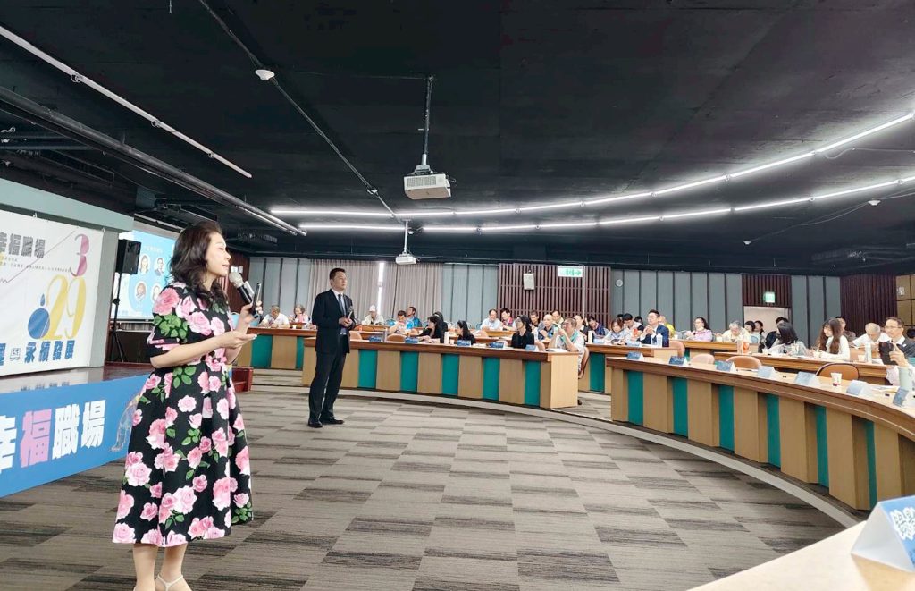 第二階段議題討論「幸福職場永續:AI時代下的尊嚴勞動」,劉竹華說,AI時代競爭力應以人為本,職場不應是物競天擇的修羅場,落實「職場霸凌法制化」,為勞動者建構幸福職場。