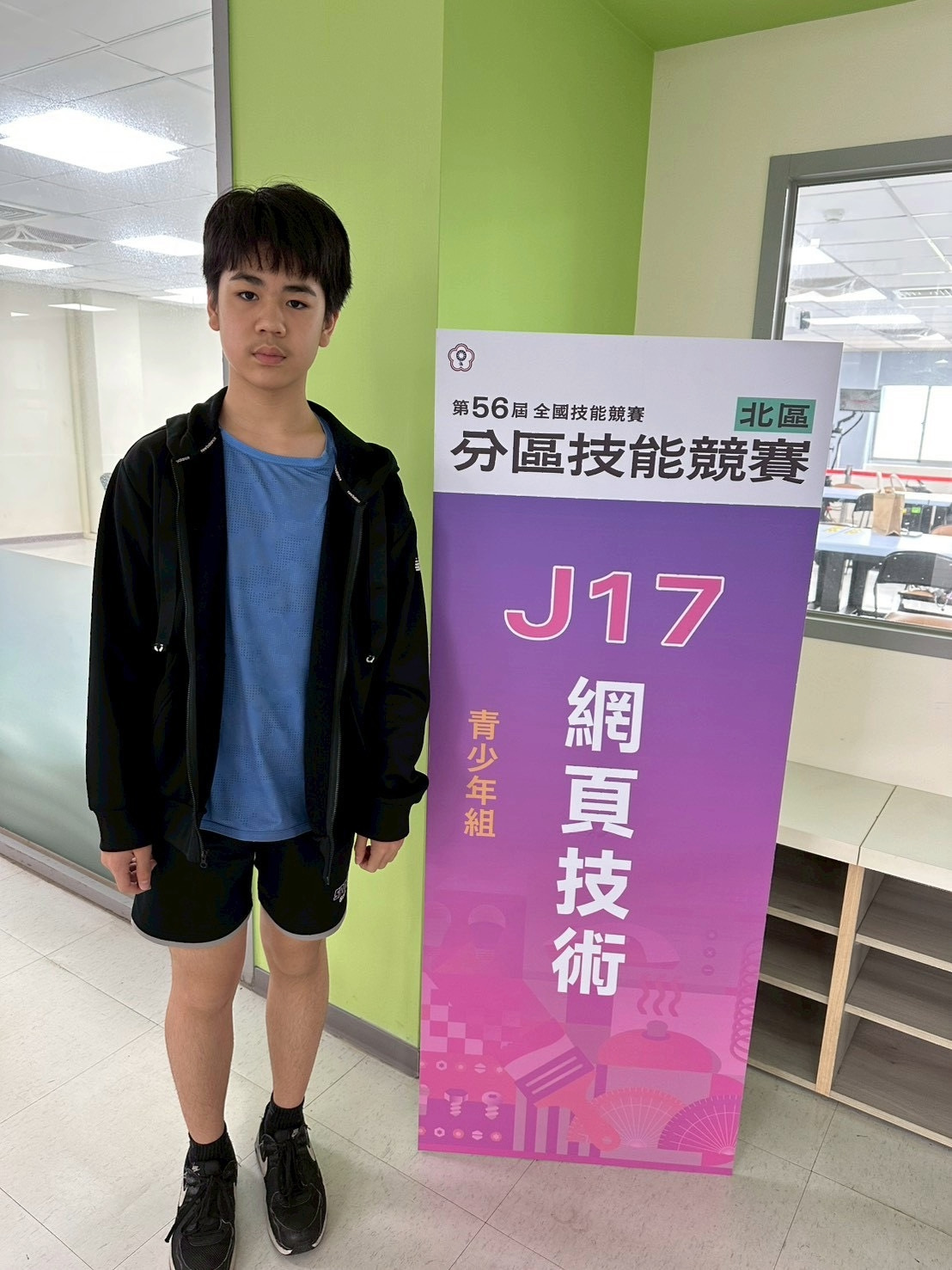 榮獲網頁設計青少年組第一名的中正國中吳昱漢同學獲得第一名!新北市教育局提供