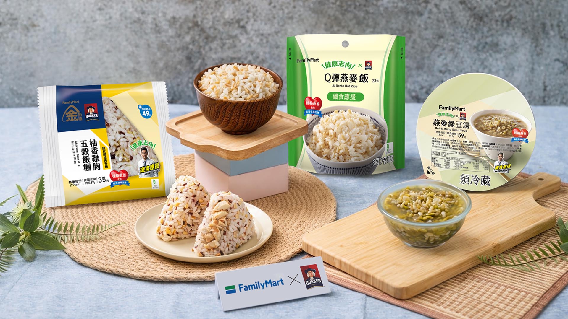 延續去年合作,成功帶動市場關注,桂格今年進一步深化與全家便利商店「健康志向」鮮食的合作,將於4-6月陸續推出5款聯名商品。「雞肉穀物飯」及「鮪魚穀物飯」(4月29日上市)2款冷凍炊飯首度將桂格穀飯融入便利商店鮮食中,另有「柚香雞胸五穀飯糰」(6月24日上市)添加20%桂格免浸泡5+超纖穀飯,搭配清爽柚香雞胸肉,打造輕盈少負擔的主食選擇。還有「Q彈燕麥飯」(4月1日上市)則將富含膳食纖維的桂格燕麥,與白米共同炊煮,增加咀嚼口感,實現每日主食革新,以全榖替代部分精緻澱粉。