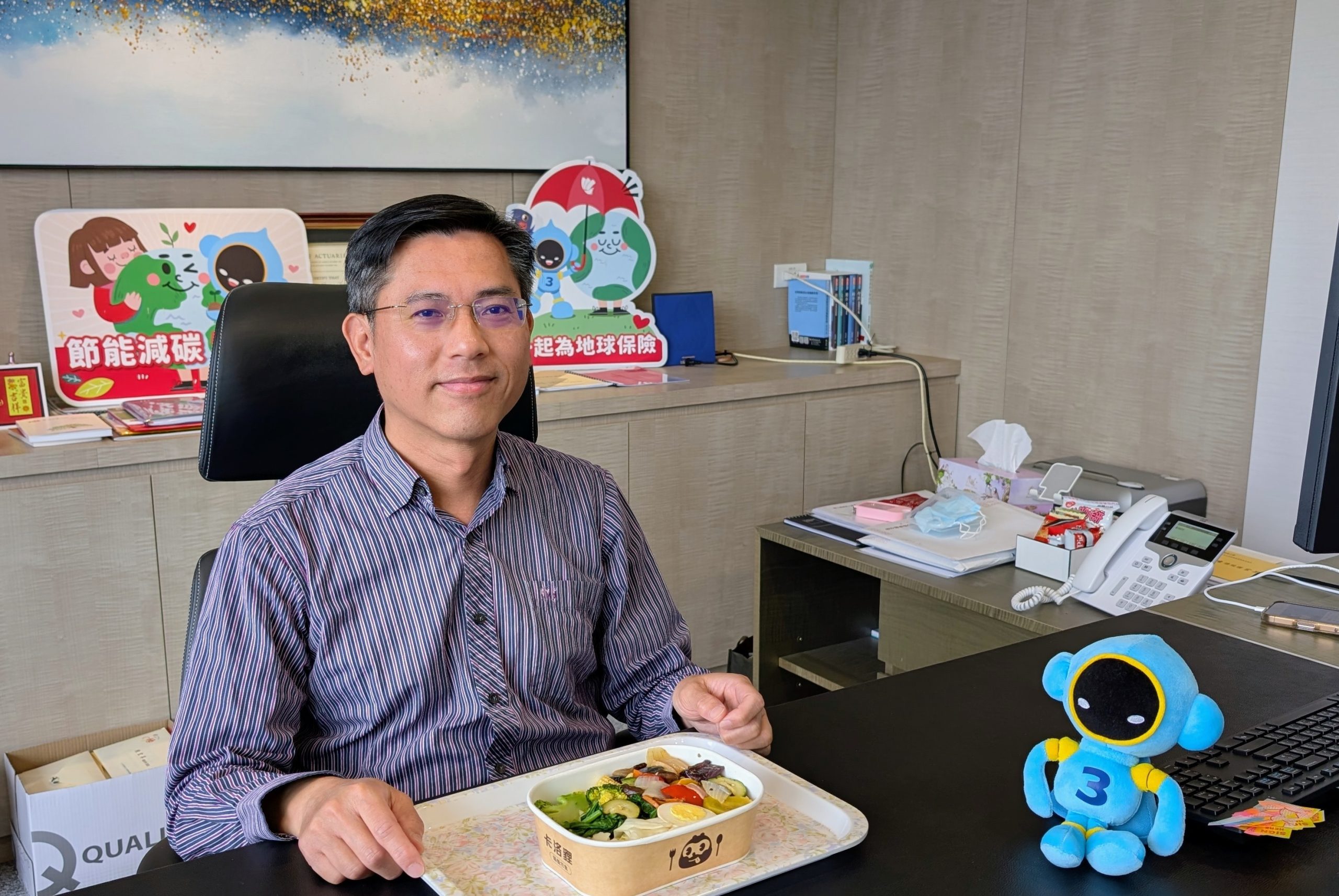 三商美邦人壽總經理陳宏昇帶頭示範「無肉午餐」,號召同仁透過減少吃肉,為地球減碳。