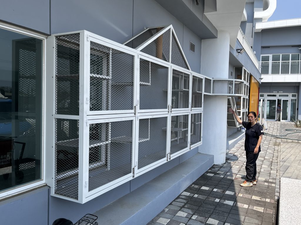 園區四棟收容建築兼顧通風與舒適性,排水系統則採高流速、易清潔且不易積垢地不鏽鋼材質,有效維持環境衛生,確保動物健康。另有專屬適合貓活動的籠子,讓貓咪可以肆意跑跳不受限。