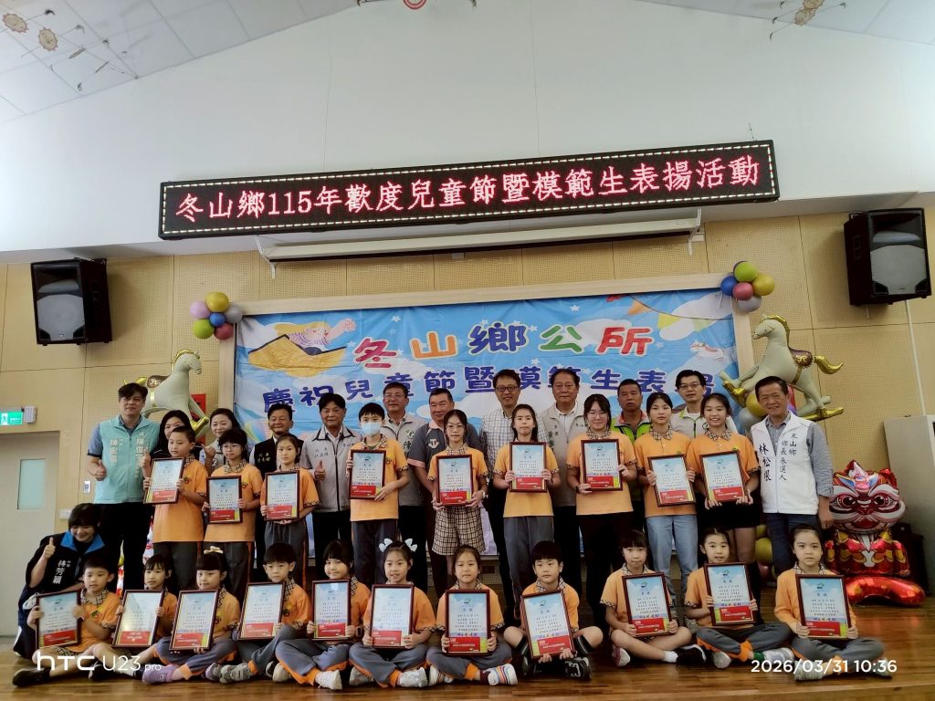 為慶祝兒童節並表彰學子優異表現,冬山鄉公所三十一日舉辦模範生表揚活動。此次活動頒贈全鄉各國小學生圖書禮券共二千一百八十八份,涵蓋冬山、順安、東興、武淵、清溝、廣興、柯林、大進及慈心華德福等九所小學。