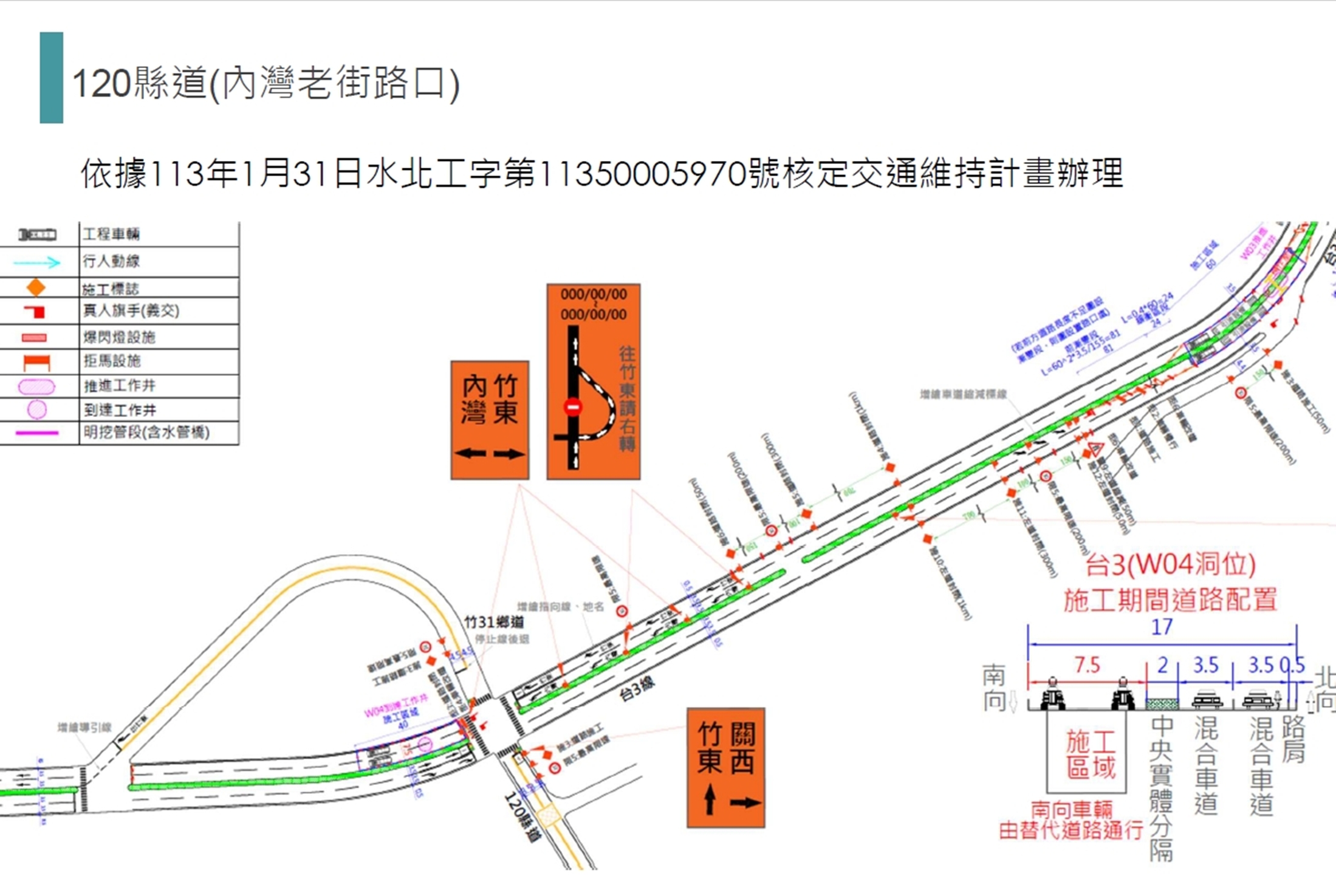 經濟部水利署北區水資源分署三十一日表示,為執行「石門水庫至新竹聯通管-道路埋設段工程」,訂於一一五年四月六日至十月五日進行台三線內灣路段(里程六十八K+九百二十二~六十八K+四百九十)南下車道封閉施工,屆時請用路人於台三線南下至一二0縣道交會口時,配合右轉改走竹三十一鄉道再接回台三線通行,至於台三線於此路段北上車輛,將不受影響。