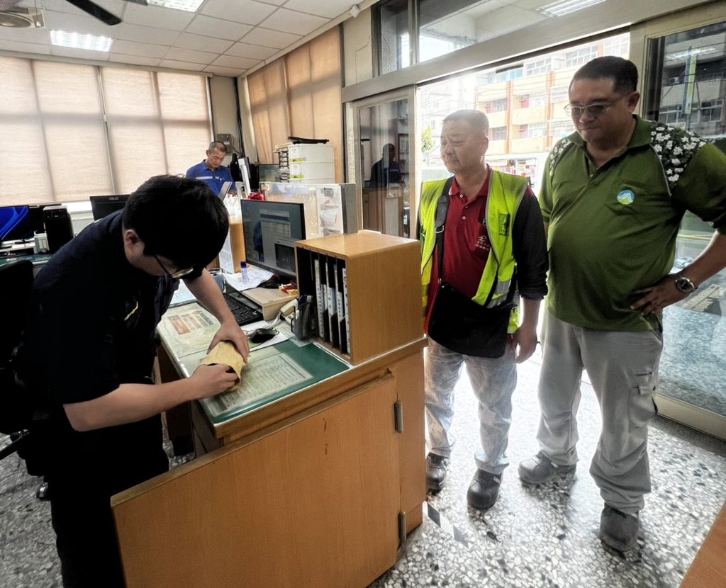 台中市大肚區清潔隊隊員清運大型家具時,將拾得五十萬九千元送交烏日警分局大肚分駐所處理並確認失主身分,展現拾金不昧精神。(記者陳金龍攝)