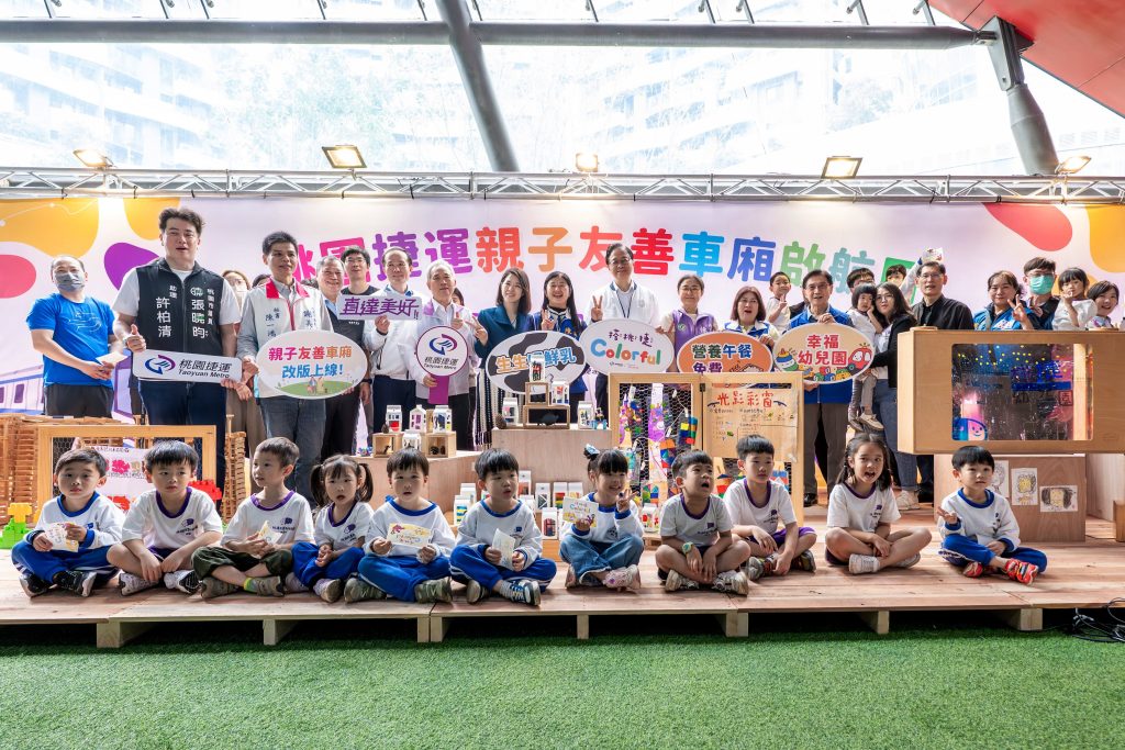 張善政於活動過程中也與孩童進行問答互動,透過車廂內的色彩元素,引導孩子認識不同顏色,讓搭乘捷運不僅是移動過程,更成為學習與探索的場域。張善政進一步指出,市府持續推動多項兒少福利政策,包括營養午餐及生生喝鮮乳等措施,從日常生活照顧學童健康,全力陪伴桃園的孩子們快樂地成長茁壯。