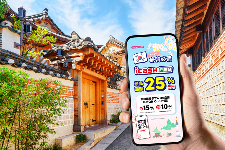 迎接2026年春夏旅遊旺季,從4月清明連假、5月勞動節、6月端午連假,乃至於7、8月暑假出遊高峰,韓國旅遊需求持續升溫,icash Pay自4月1日至8月31日推出「遊韓首選 最高回饋25%」活動,活動期間只要在韓國標示TWQR店家,透過icash Pay帳戶餘額或是連結銀行帳戶付款,不限金額享筆筆15%OPENPOINT點數回饋(每月每戶回饋上限300點);當月新戶再加碼10%OPENPOINT(每戶回饋上限300點),合計高達25%點數回饋。此外,新戶當月不限金額消費再加贈50點,1點可折抵1元,讓點數直接折抵旅費,協助旅客在不同出遊時段都能享有高回饋與便利支付體驗。