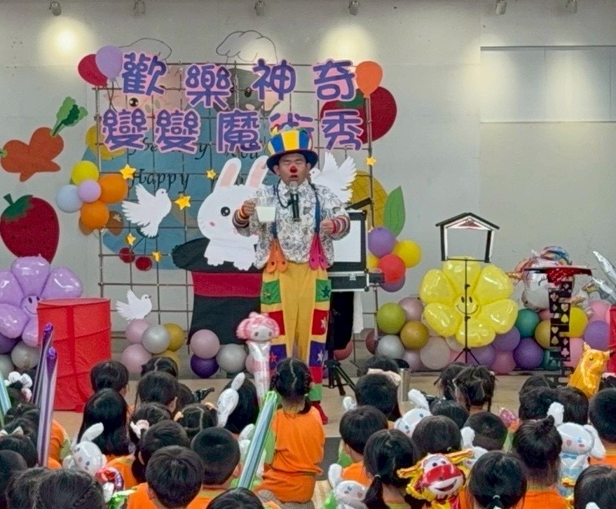 以神奇精彩魔術手法與技巧呈現不同慶祝元素,讓師生們開心且近距離欣賞魔幻表演,讓詭譎的魔力將藉由魔術師的手和眼,竄入幼兒的視覺神經!