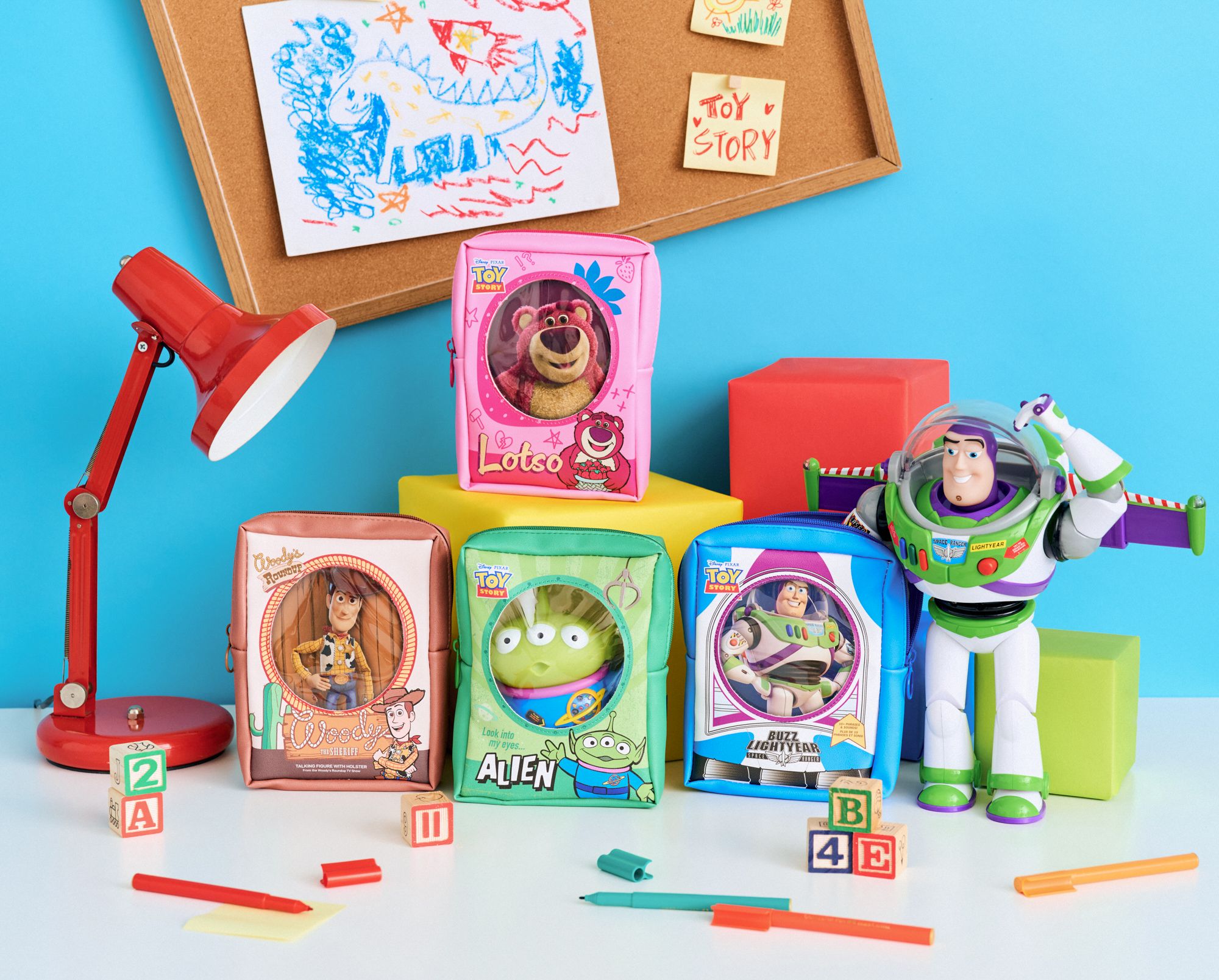 「玩具盒造型收納包」共有胡迪、巴斯光年、三眼怪、熊抱哥 4 款,設計靈感來自電影中玩具盒包裝造型,印刷細節豐富,充滿收藏價值。收納包擁有大容量空間,不僅可以收納玩具總動員玩偶,也可作為日常收納包使用,兼具實用與可愛外觀。