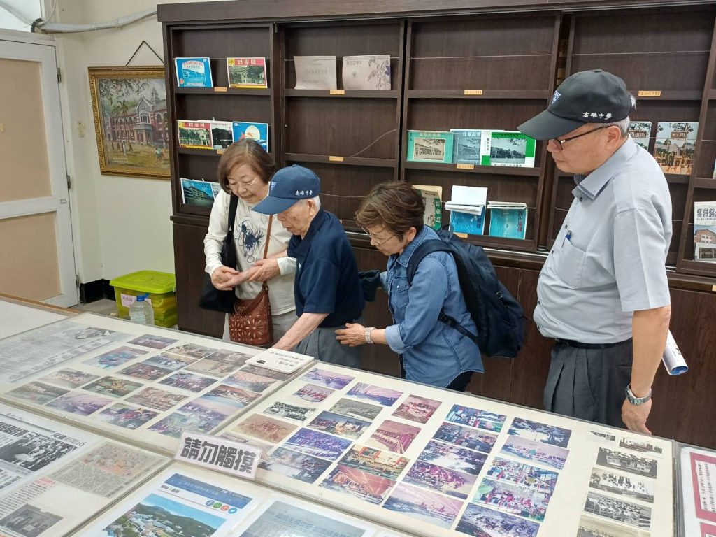 看到鼓山國小校史室點點滴滴的老照片,尤其鼓山國小彷彿百年前建築風格的校舍,行動不便的宮城堅持在陪同人員攙扶下逐一走回當年的快樂時光,也找回他兒時的相關回憶記錄與點點滴滴。