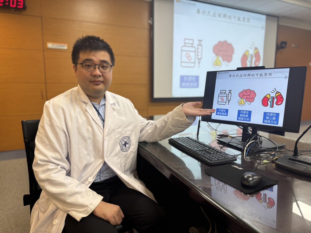 沈宗郁提醒,若出現不尋常的高血壓或骨質疏鬆,或同時具備多項典型表徵,如臉紅、紫紋、易瘀青及近端肌肉無力,應提高警覺。此外,兒童若出現身高成長停滯但體重增加,或影像檢查偶然發現腎上腺腫瘤,也應進一步評估是否與庫欣氏症相關。在診斷上,外源性庫欣氏症主要透過詳細病史釐清是否有類固醇暴露;內源性則需透過血液、唾液或尿液檢測進行篩檢,必要時住院進行進一步檢查與病灶定位。治療上以手術切除異常分泌荷爾蒙的病灶為首選,若不適合手術,則可考慮藥物或放射線治療。