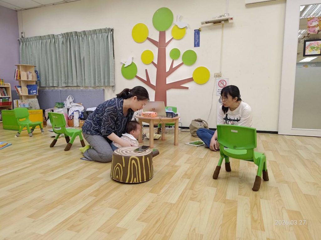 新樓醫院小兒科主任陳奕吟醫師為0至四歲幼兒提供一對一發展篩檢,內容涵蓋語言、動作、認知及社會互動等面向。相較於醫療院所環境,親子館空間較為開放與放鬆,能降低幼兒面對醫療人員時的緊張情緒,有助於呈現較自然的行為表現。