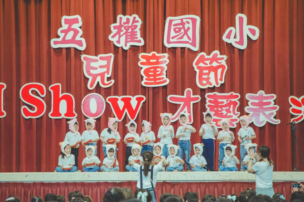 五權國小舉辦慶祝兒童節活動暨科學園遊會,圖為小朋友上台ishow才藝表演。(五權國小提供)