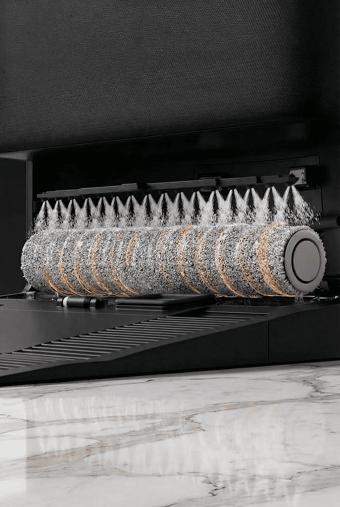 DEEBOT_X12_PRO_32路滾筒增壓活水洗地技術,16孔增壓水泵設計、每孔分為兩路,32路均勻出水,洗地同時高壓沖洗,真正杜絕以髒拖髒。