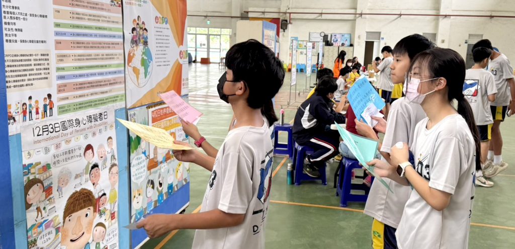 此次活動規劃三大主題闖關,包括「CRPD互動海報展」、「學障體驗—閱讀很容易嗎?」及「視界觀世界—口述影像體驗」。學生持闖關卡逐關體驗,完成任務即可蓋章並參加摸彩活動,現場氣氛熱絡。