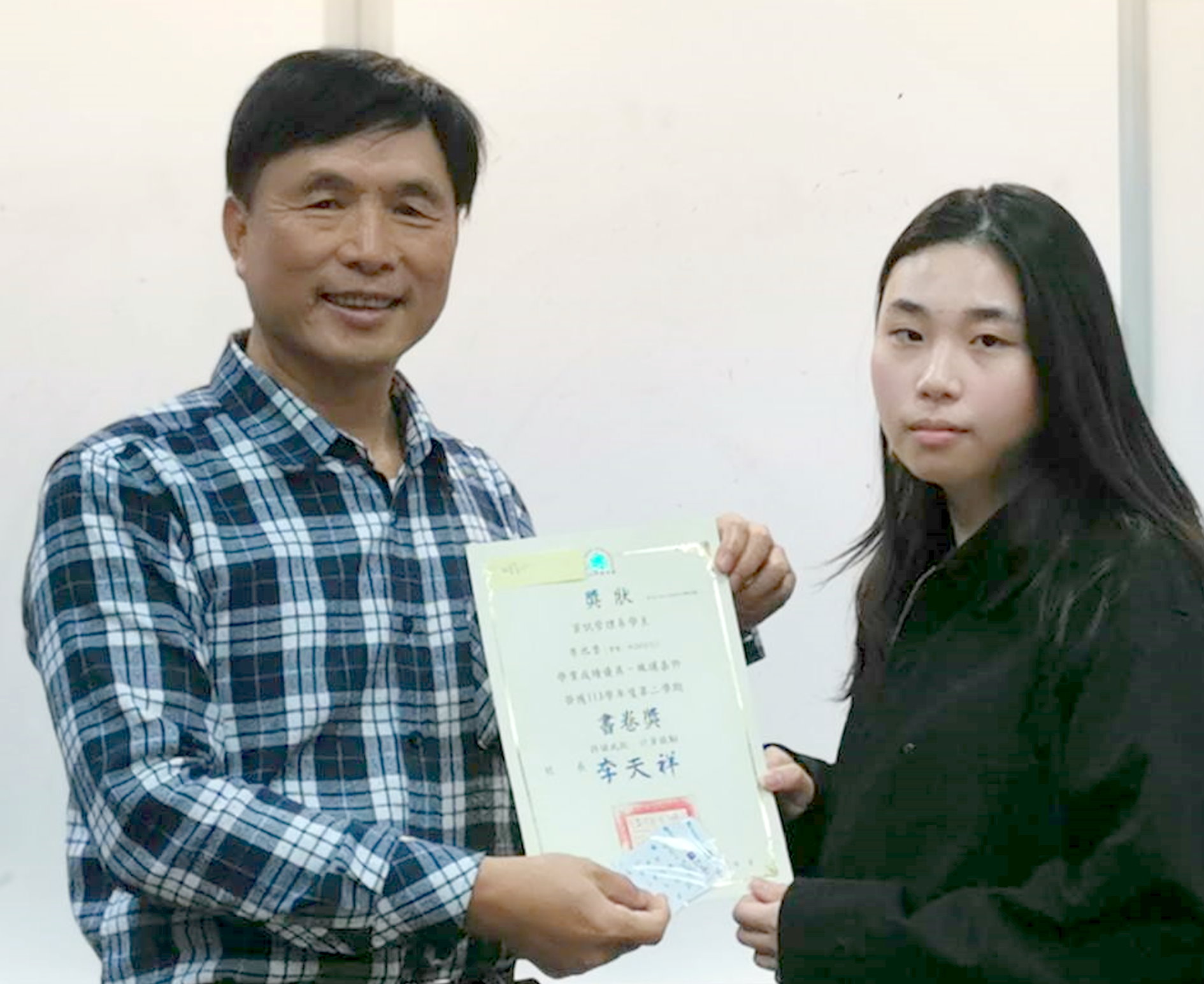 崑大資管系產學攜手僑生專班三年級學生李水香(右),產學實習成績全系之冠,獲頒「書卷獎」。(崑大提供)