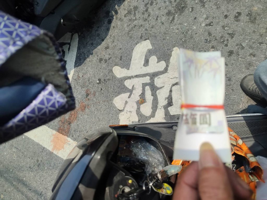 高雄市刑大指出,該名李姓民眾於中午12時許前往鳳山區中山路購買餡餅,離開後發現機車上遭人放置名片與現金綁在一起,因來源不明且擔心涉及詐騙或其他風險,隨即前往高雄市刑大報案尋求協助。