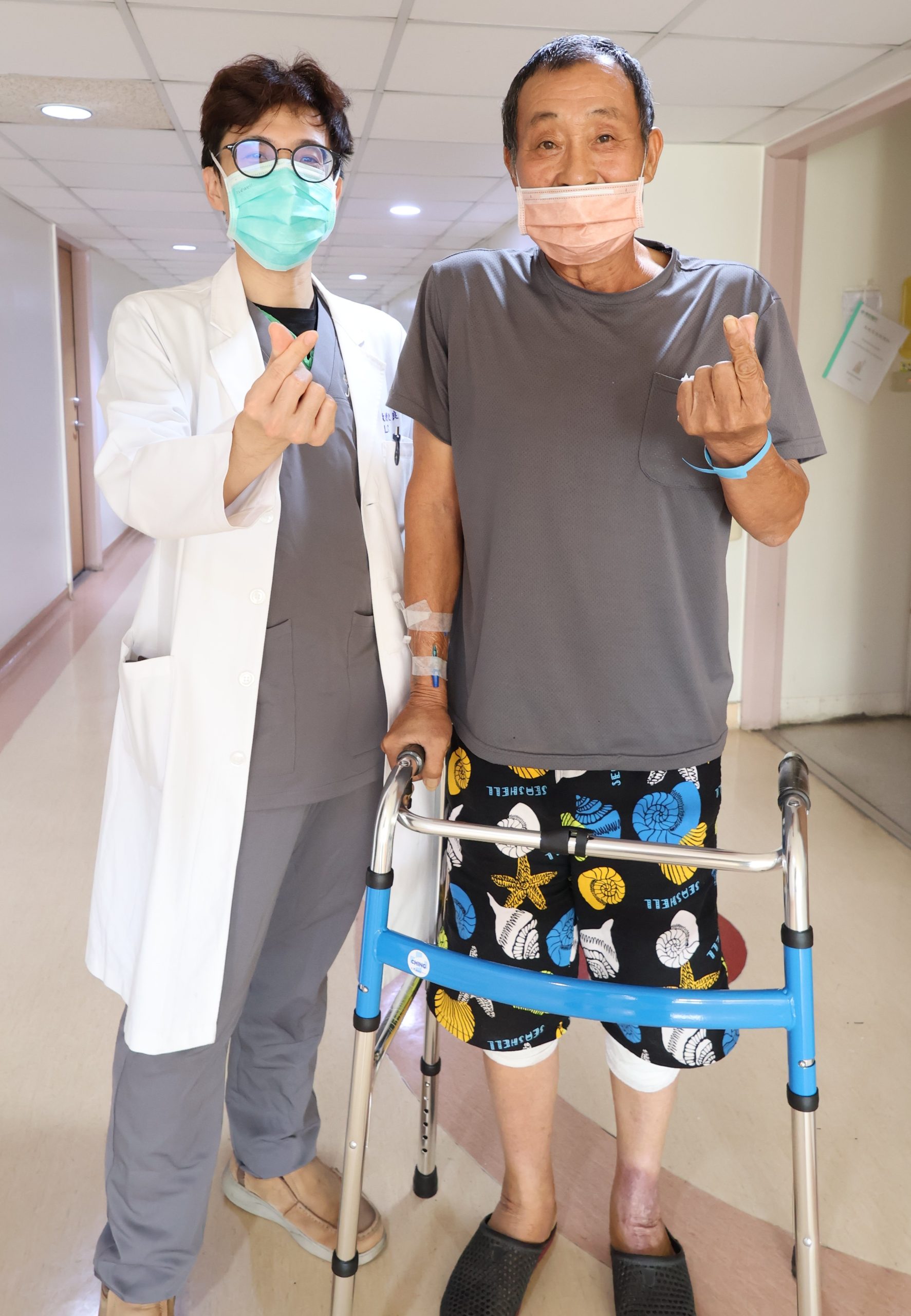 患者住院中接受右側正前位人工髖關節置換手術及人工膝關節置換手術,術後恢復情形良好,約4小時後即下床自行如廁,隔天一早便能自行步行走出病房,疼痛獲顯著改善,甚至在術後兩天已脫離助行器行走,全程住院幾乎不需要額外看護。