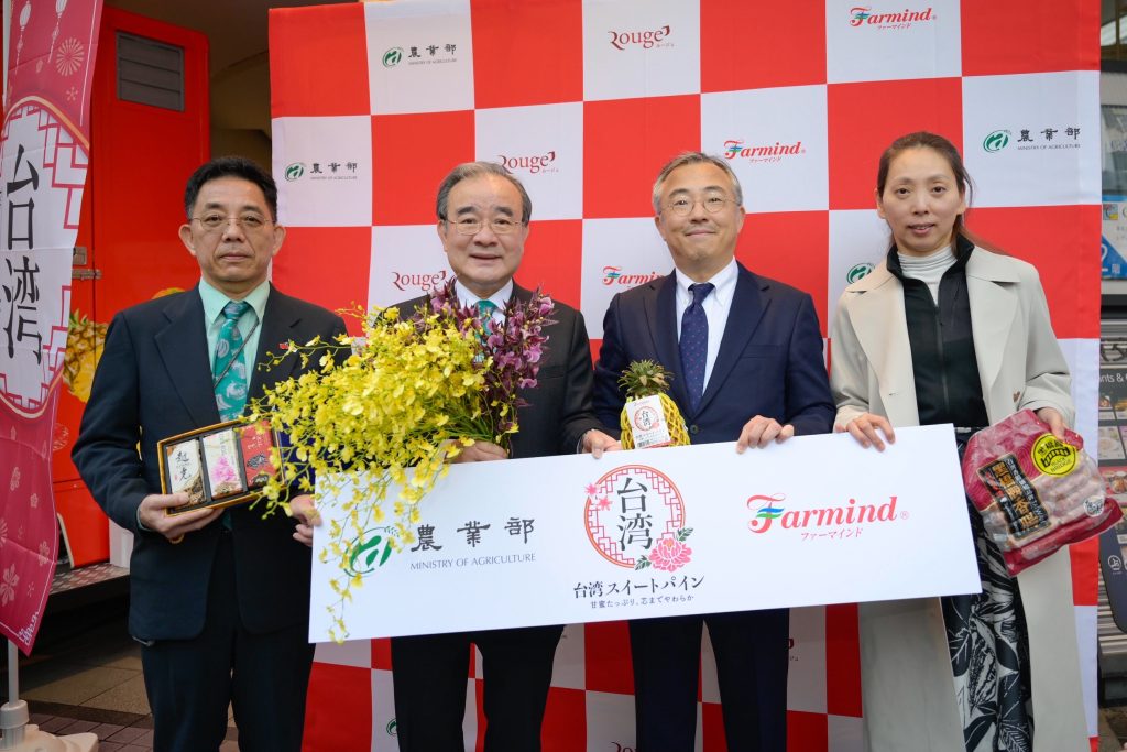 農業部胡忠一政務次長4日在日本東京出席「臺灣祭(台湾フェア)」,活動由農業部攜手日本蔬果通路龍頭「Farmind株式會社」及「Rouge Japan(ルージュジャパン)株式會社」共同主辦,在東京有樂町交通會館前廣場,以充滿活力的「露天餐車」形式,將臺灣優質的金鑽鳳梨、產銷履歷米、經典品牌香腸及精緻花卉等農產品形象,深深植入日本消費者心中與日常生活。