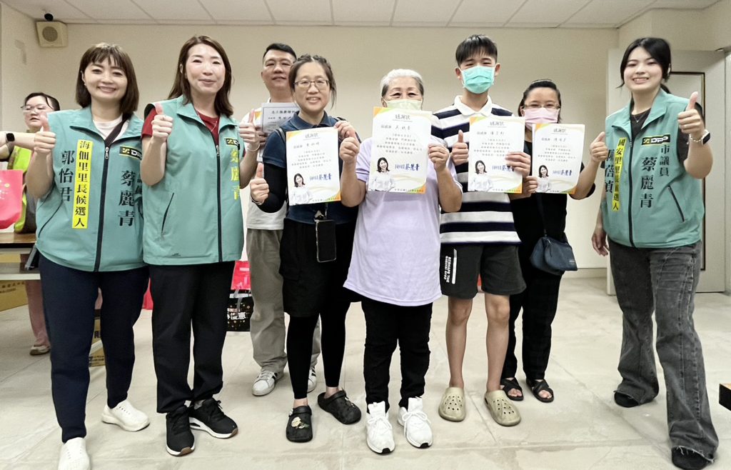 市議員蔡麗青及國安里長參選人陳蓓楨、海佃里長參選人郭怡君四日號召「小小環保尖兵」,帶著孩子們走上街頭掃街撿垃圾,用雙手守護環境,度過不一樣的兒童節,市長夫人劉育菁也出席表揚,肯定大家為這塊土地的付出。