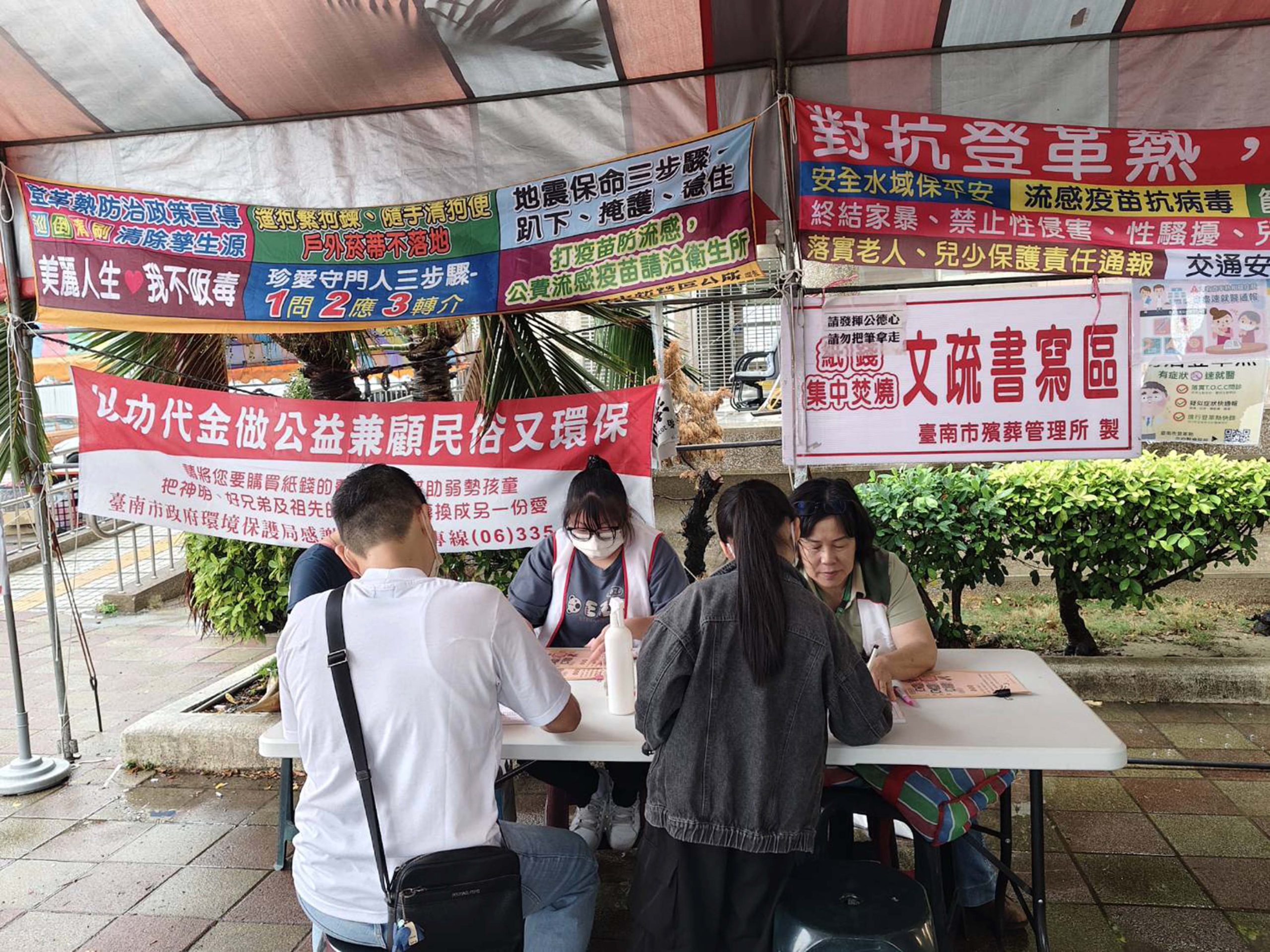 北台南家扶中心清明節在各納骨塔推廣「以功代金」,今年共安排十七場次推廣活動,比去年還多出三場次,不過四日各地都有明顯雨勢,捐款人潮不如往年,北家扶表示,以功代金推廣至五日,希望民眾能多加支持,相關款項將用來幫助家扶兒一圓升學夢想。
