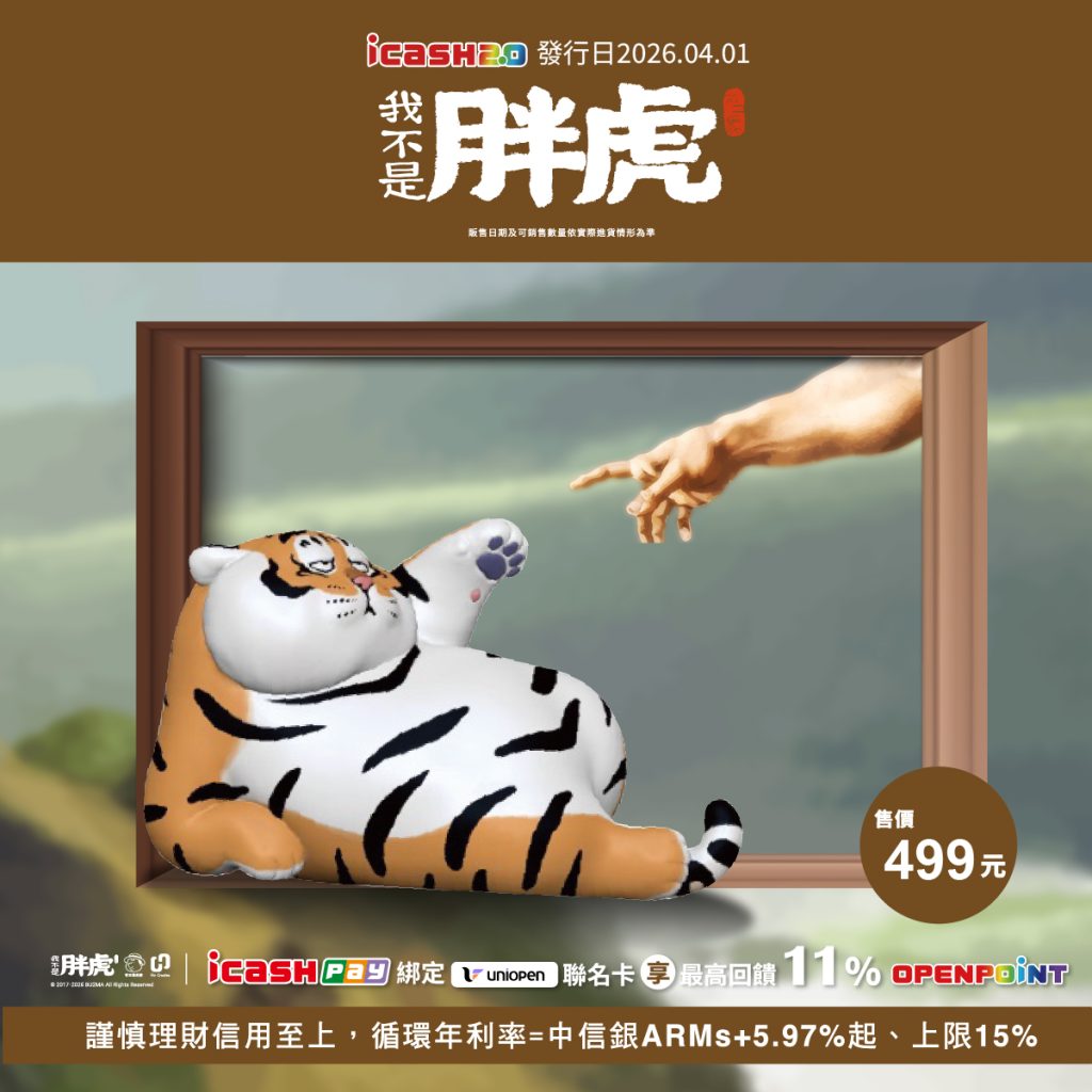 如果你覺得生活太悶,想找點樂趣,那這款「我不是胖虎-創造胖虎 icash2.0」絕對能讓你一秒噴笑!愛金卡公司再度邀請超人氣IP「我不是胖虎」跨界合作,但這次我們不走可愛路線,我們要走的是「國際藝術」路線。這款icash2.0以立體公仔形式呈現,造型靈感來自於文藝復興大師米開朗基羅的經典作品《創造亞當》。只見原本體態健美的亞當,搖身一變成了那隻渾圓飽滿、帶著無奈神情的胖虎;而上帝的手指,正試圖觸碰胖虎那充滿喜感的肥嫩小爪。這場「神級惡搞」將大師巨作與胖虎的慵懶氣質完美融合,呈現出一種衝突卻又莫名和諧的喜感。卡片不僅細節滿分,連胖虎那招牌的橫條紋與圓滾滾的肚子都精緻還原,掛在包包上,你就是街頭最亮眼的「藝術評論家」!
