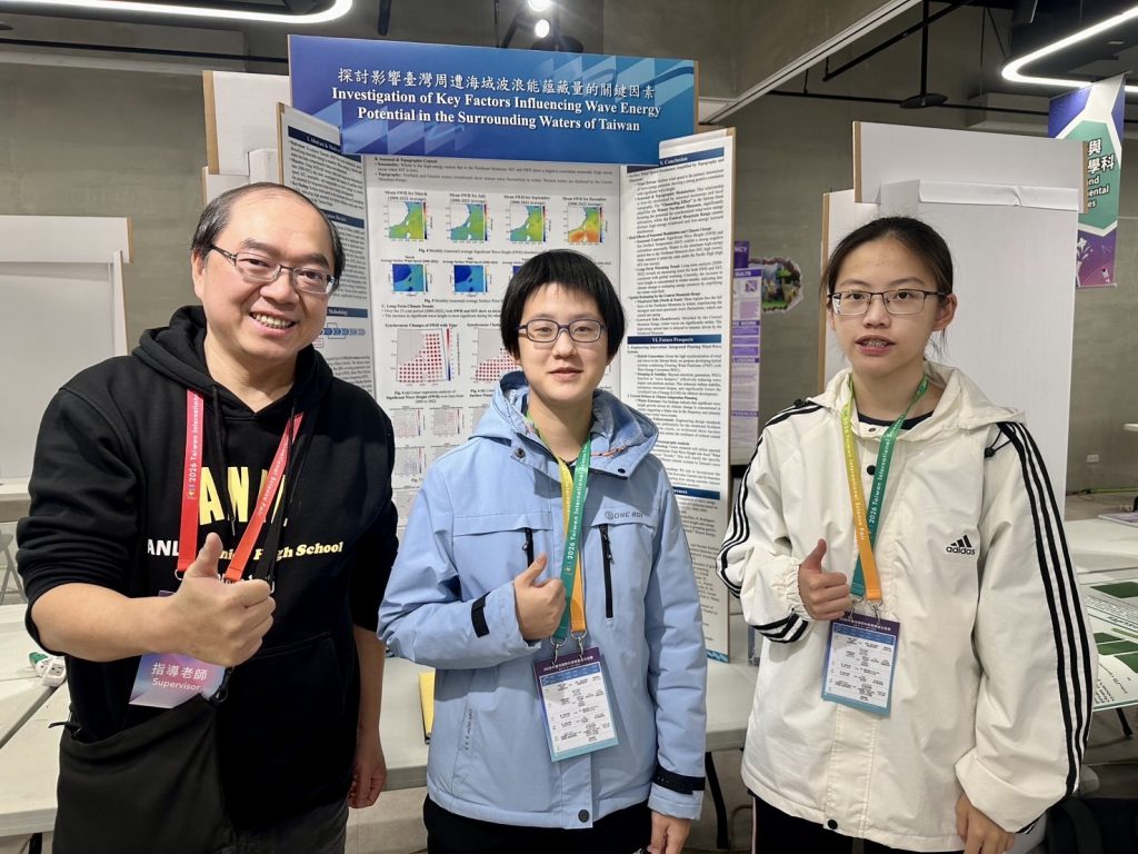 指導老師劉育祈表示,難得的是今年參賽學生皆為高三同學,在升學準備壓力之下,仍持續投入研究,蘇暐恩與陳樂宣同學隨著在「波浪能」相關研究逐步深入,才發現需在龐大的海洋資料中抽絲剝繭、尋找規律,面對挑戰,兩人選擇迎難而上,透過自主學習,逐步培養閱讀期刊論文的能力,學習程式撰寫,進行大數據分析,展開超越課堂框架、充滿探索與成長的研究旅程。