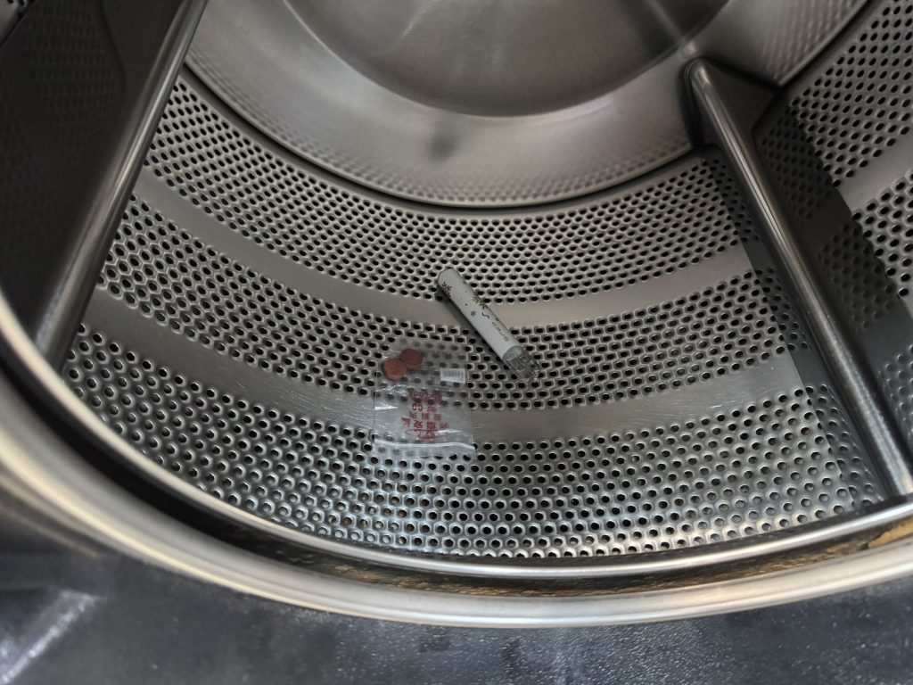 員警見兩人行徑反常,立即上前盤查,並進入洗衣店內進行搜索,警方在一部未運轉的洗衣機桶槽內,發現王嫌藏匿的依托咪酯菸彈2顆,重量分別為5.14公克及5.37公克及毒品梅錠2顆毛重2.37公克。隨後進一步在該車輛內查獲毒品咖啡包3包毛重19.45公克及依托咪酯菸彈1顆毛重5.5公克。