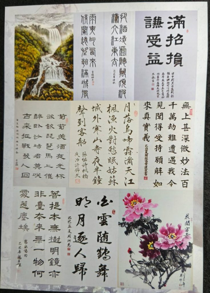 此次書畫聯展展出作品琳瑯滿目、目不暇給:計書法五十五幅,有楷書、行書、隸書、小篆、草書等五體兼備;觀之:龍飛鳳舞、秀麗遒勁;繪畫廿幅,賞之:妙筆生花、花團錦簇;都頗得佇足以觀,而細細品味。