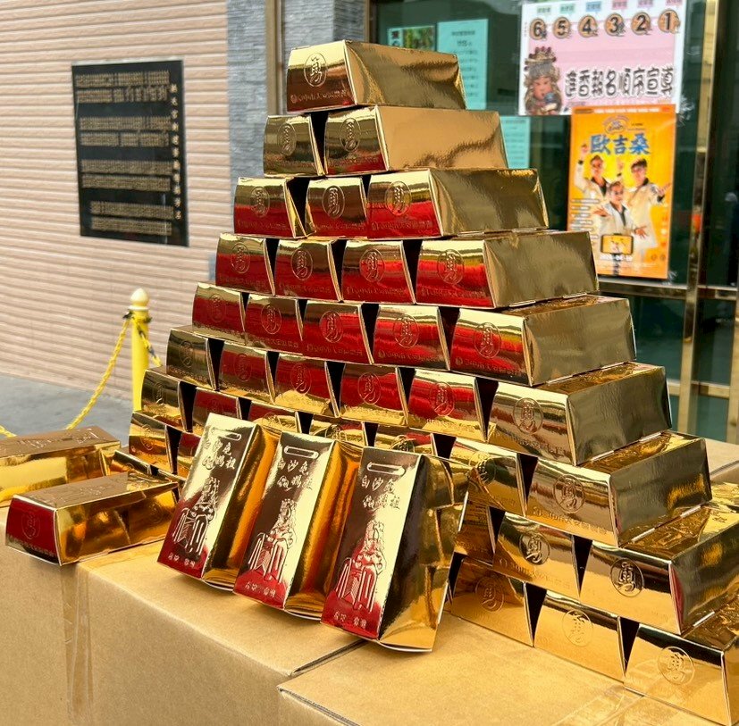 大安區農會以實際行動響應,捐贈1000個金磚米予白沙屯拱天宮,為遶境活動增添溫暖與祝福。(記者陳榮昌攝)