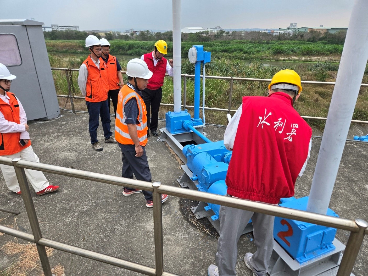 落實防汛整備工作,水利署與台中市政府水利局辦理水利建造物及大型防汛機具抽查,實地勘察烏日區中興抽水站、夏田堤防中興段水門及五光簡易抽水站等設施操作與保養維護情形,為即將到來的汛期做好全面準備。