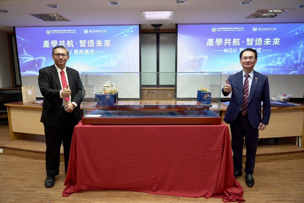 台灣國際造船股份有限公司與國立高雄科技大學8日正式簽署為期五年的產學合作意向書(MOU)。簽約儀式由台船公司陳政宏董事長與高科大吳忠信校長代表簽署,雙方宣布將擴大產學合作,從研究計畫、學生實習到人才培育等面向串聯,攜手打造南台灣海洋產業人才培育重鎮。因應造船技術持續發展,以及國艦國造、離岸風電及智慧船舶等國家政策的推動,產業界對工程及跨領域專業人才需求日益提升。
