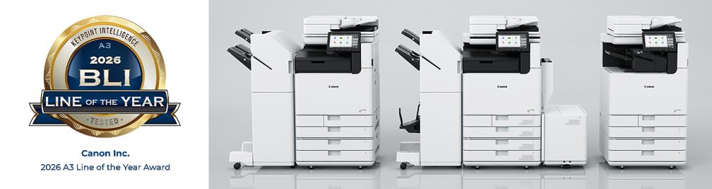 本獎項表彰Canon 全系列 A3 產品的卓越性能,涵蓋新世代 imageFORCE 與 imageRUNNER ADVANCE DX 系列。在因應現代混合工作環境高強度需求所進行的評估中,Canon 產品系列以出色的可靠性、直覺易用的操作體驗,以及堅不可摧的資安防護,獲得 Keypoint Intelligence 的高度肯定。