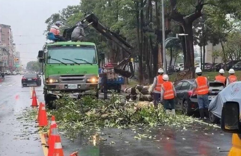 警方立即派遣員警趕赴現場,由於當時仍持續降雨,路面濕滑,警方於現場拉設封鎖線,並擺放交通錐實施單線管制,指揮車輛減速通行,同時避免民眾靠近倒塌樹木發生危險,並通報市府相關權責單位到場,調派工程車與人員進行鋸切、吊掛與清運作業,工作人員合力分解樹幹,並由吊車逐段移除。