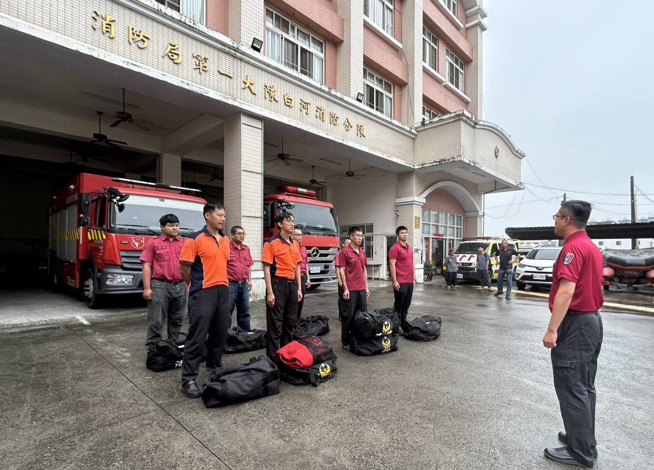 第一大隊指出,近年南台灣進入梅雨季節之後,時常遭受驚人的雨量侵襲,前年凱米颱風造成八掌溪潰堤溢流事件,影響後壁、鹽水等多處淹水甚深。為強化易淹水區域之防災整備作為,第一大隊於後壁、新營、鹽水、柳營等共十三個部署點位,動員九十一人、十七車、廿二船艇,結合民間團體備齊各式救生器材至部署點位集結,並協力區公所訪視易淹水區域保全戶,強化整體防汛能量。