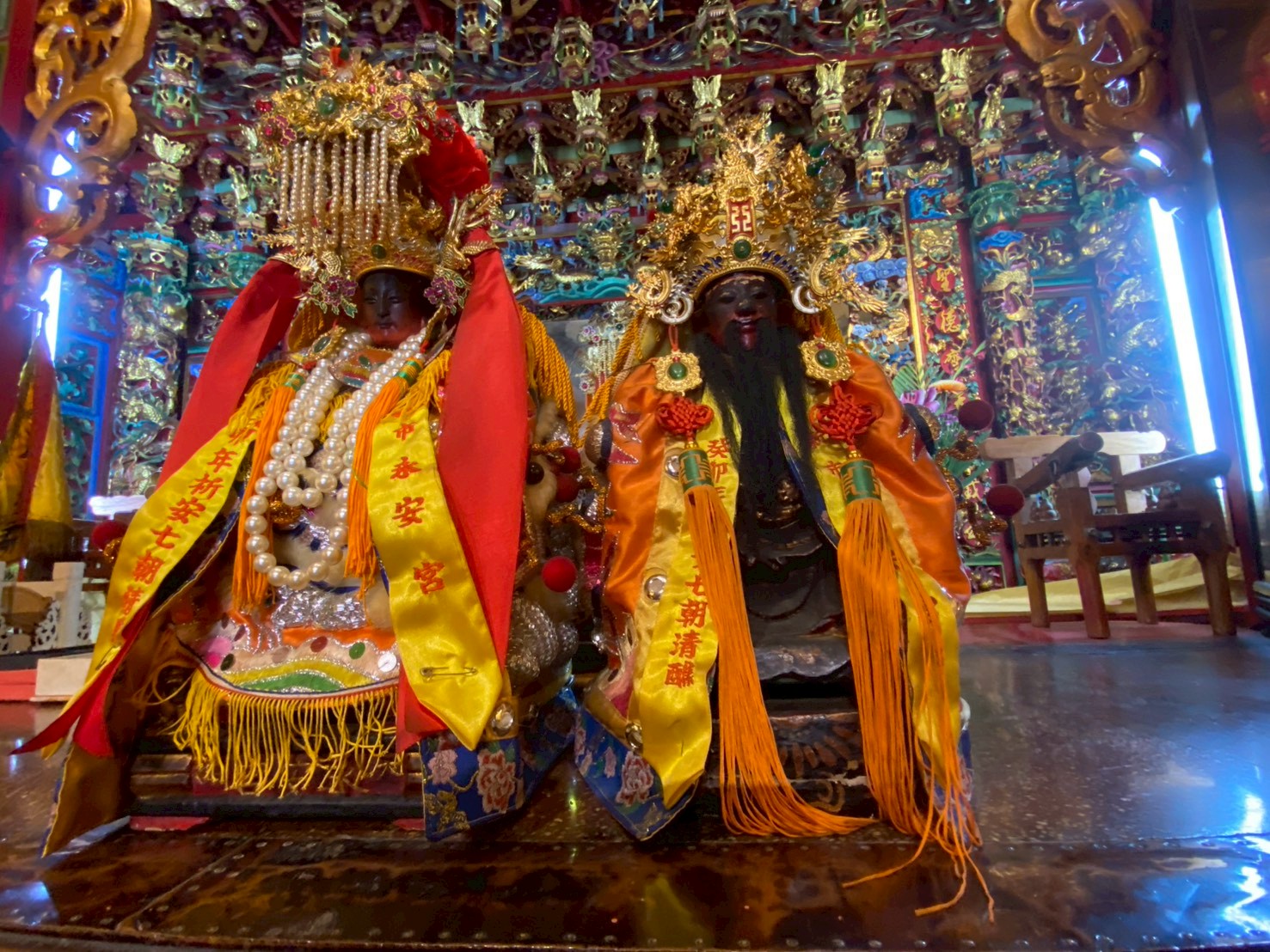 永安宮媽祖(左)與李府千歲合祀百餘年了。