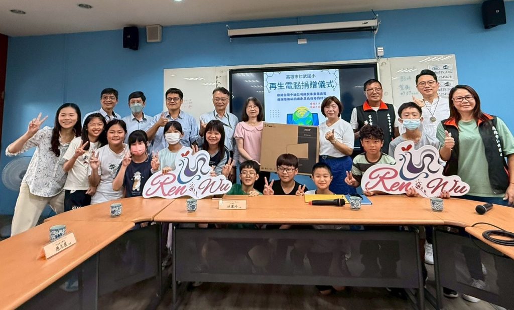 為縮減數位學習落差並推動環境永續,台灣中油公司日在仁武國民小學舉行再生電腦捐贈儀式,捐贈三十台經整理翻新的電腦設備,提供學校作為教學與學習使用,期盼透過資源再利用,提升學童數位學習機會,並深化永續發展教育。