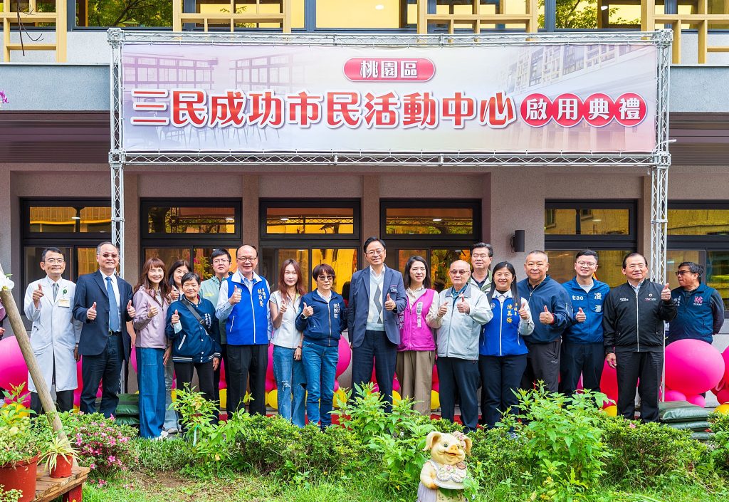 桃園市長張善政八日下午前往桃園區,出席「桃園區三民成功市民活動中心興建工程啟用典禮」。張市長表示,原有市民活動中心建於民國六十六年,建築結構老舊安全性不符現今耐震規範,因此,市府於一一三年投入約七千四百一十五萬元預算啟動拆除重建工程,完工啟用後,將成為在地居民休憩交流的重要據點,有助強化社區凝聚力。