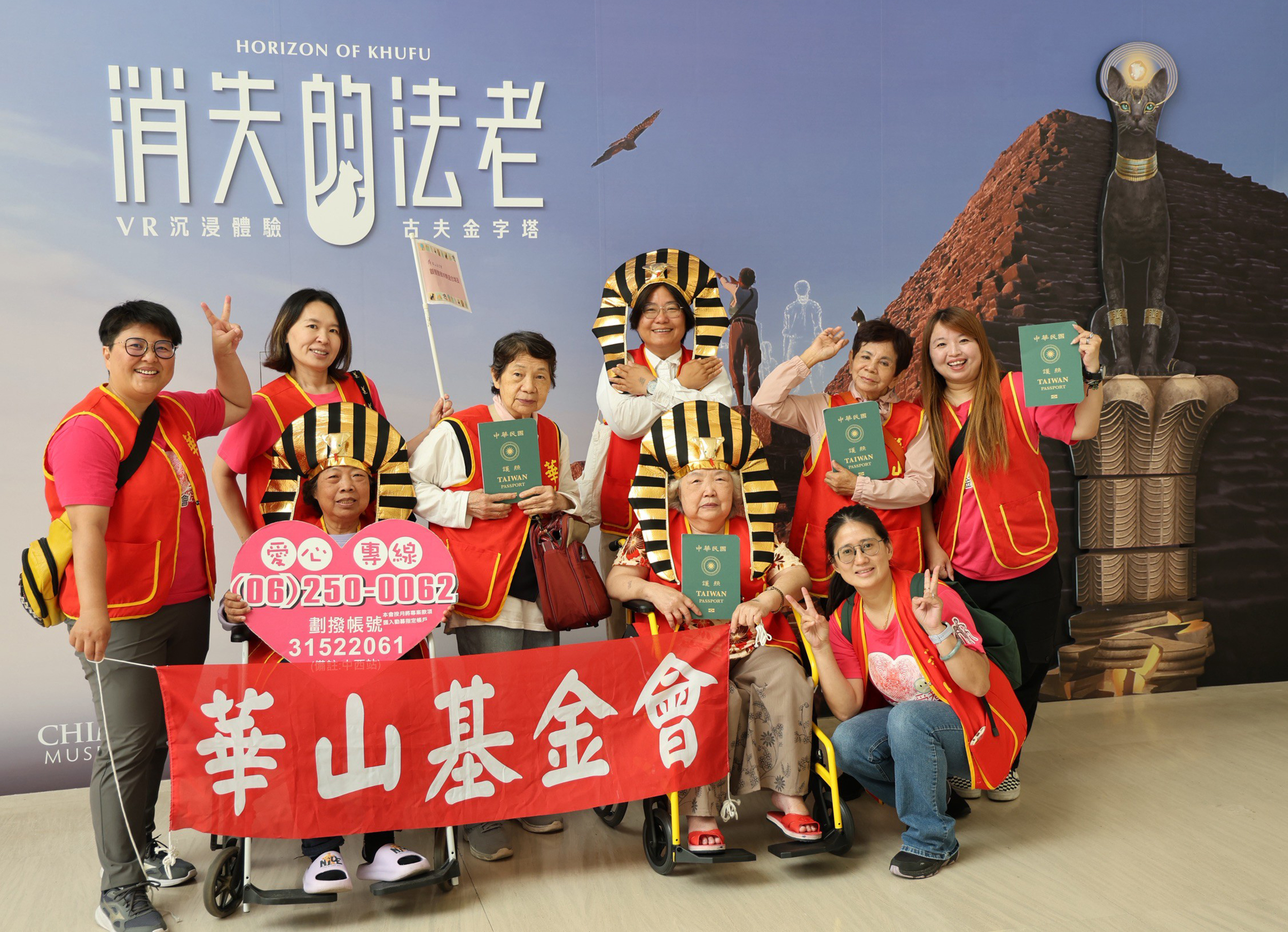 華山基金會特別安排「穿越時空古埃及」圓夢計畫,陪同吳阿嬤與多位長輩組成「銀髮閨蜜團」,參訪奇美博物館《埃及之王:法老》特展,透過VR沉浸式體驗,彷彿親臨古埃及金字塔,長輩們留下珍貴且難忘的回憶。