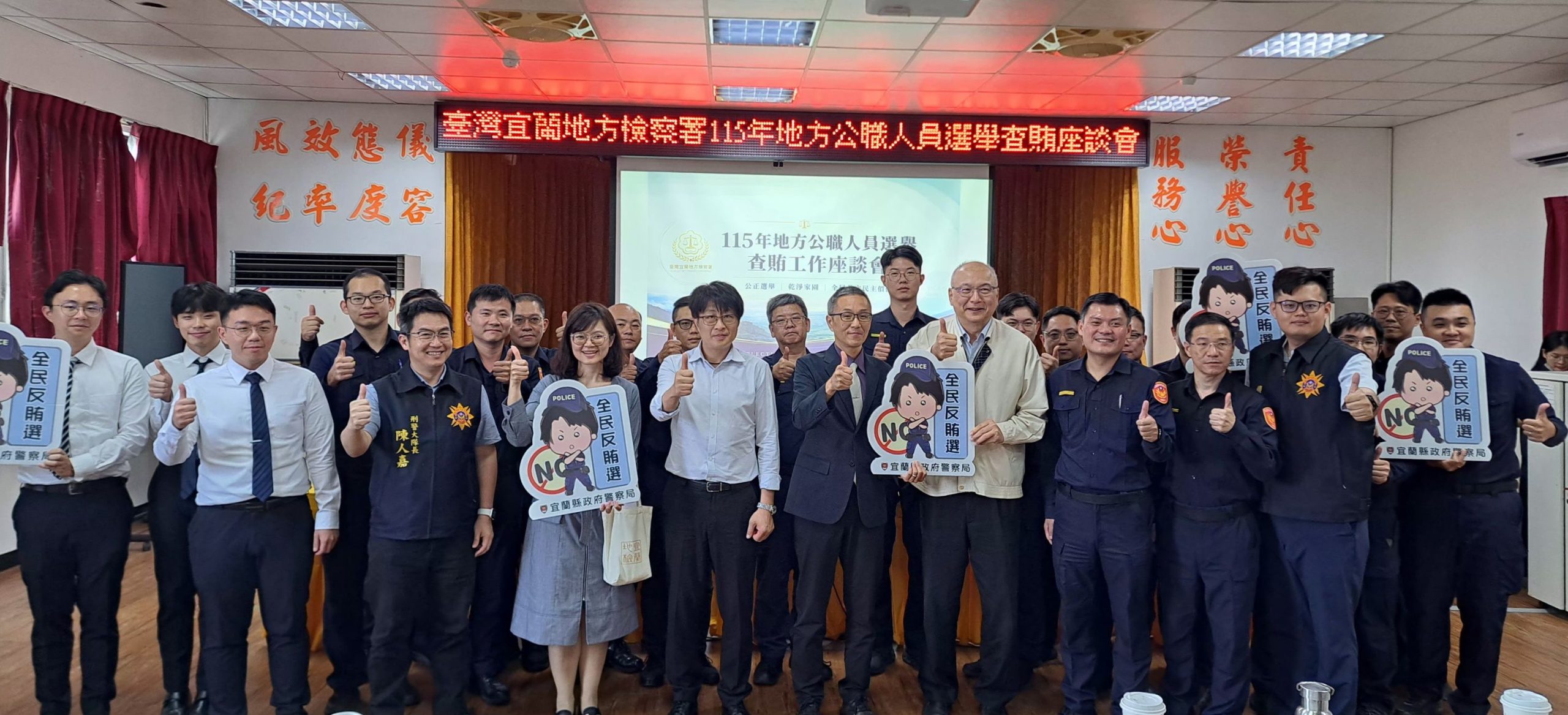 宜蘭地檢署為因應即將於民國一一五年十一月二十八日舉行之地方公職人員選舉,凝聚執法共識,十日起,輪次至轄內各警分局與第一線執法人員進行選舉查察期前策略座談。