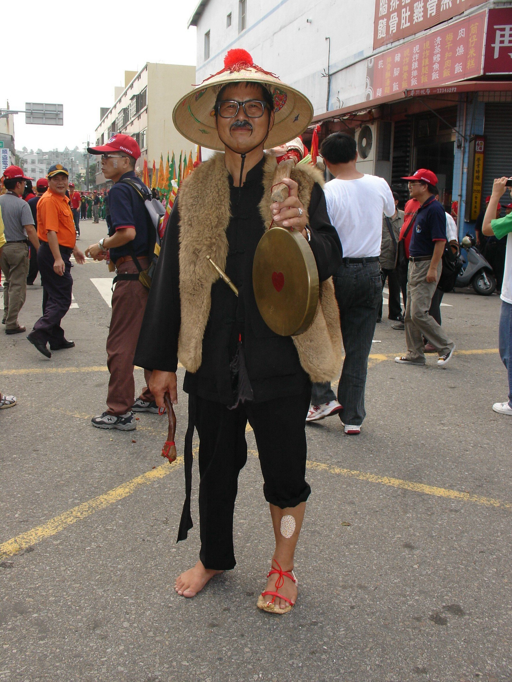 報馬仔「又稱探馬仔」身著清朝服裝,眼戴老花眼鏡,嘴留燕尾鬚,肩挑紙傘,旱煙斗,上掛稱為長生肉的豬蹄、菲菜(稱長生菜),茶壼,手提響鑼,身披羊毛襖,一腳穿草鞋,褲管捲成高低狀,一腳打赤,上劃瘡疤,造型怪異奇特。