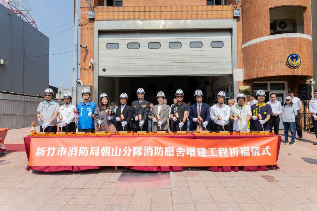 新竹市政府十日舉辦「消防局朝山分隊廳舍增建工程」動工暨祈福儀式,由市長高虹安主持,該工程將全面升級備勤與勤務環境,進一步提升消防服務量能。(記者曾芳蘭攝)